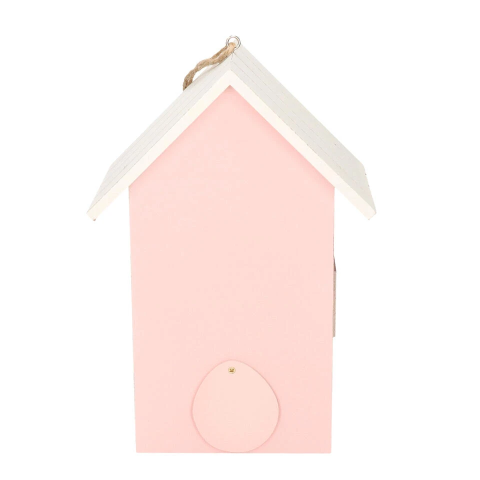 Nestkast/vogelhuisje roze huisje met wit dak van MDF hout.