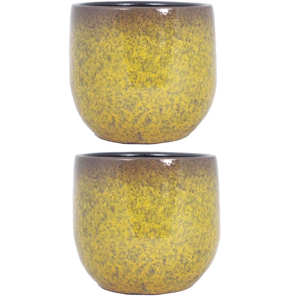 Floran Bloempot Mandy – Geel Met Flakes – Keramiek – 27 X 25 Cm
