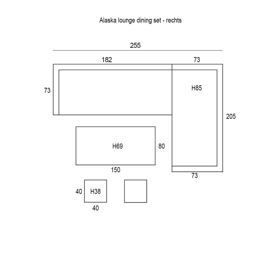 De Alaska lounge dining set bestaat uit twee losse bankdelen, een hoge tafel, een lounge dining stoel en twee krukjes. De lounge bankdelen kunnen aan de onderzijde door middel van connectie clips eenvoudig aan elkaar vast worden gezet. Na ontvangst van de set moet alleen een armleuning en het onderstel van de tafel gemonteerd worden. Dit is gemakkelijk zelf te doen. De Alaska lounge dining set is leverbaar in twee kleurstellingen en in twee opstellingen (linker- en rechter uitvoering) te plaatsen. Daarnaast kan de Alaska lounge dining set worden uitgebreid met een dining fauteuil in dezelfde kleurstelling.