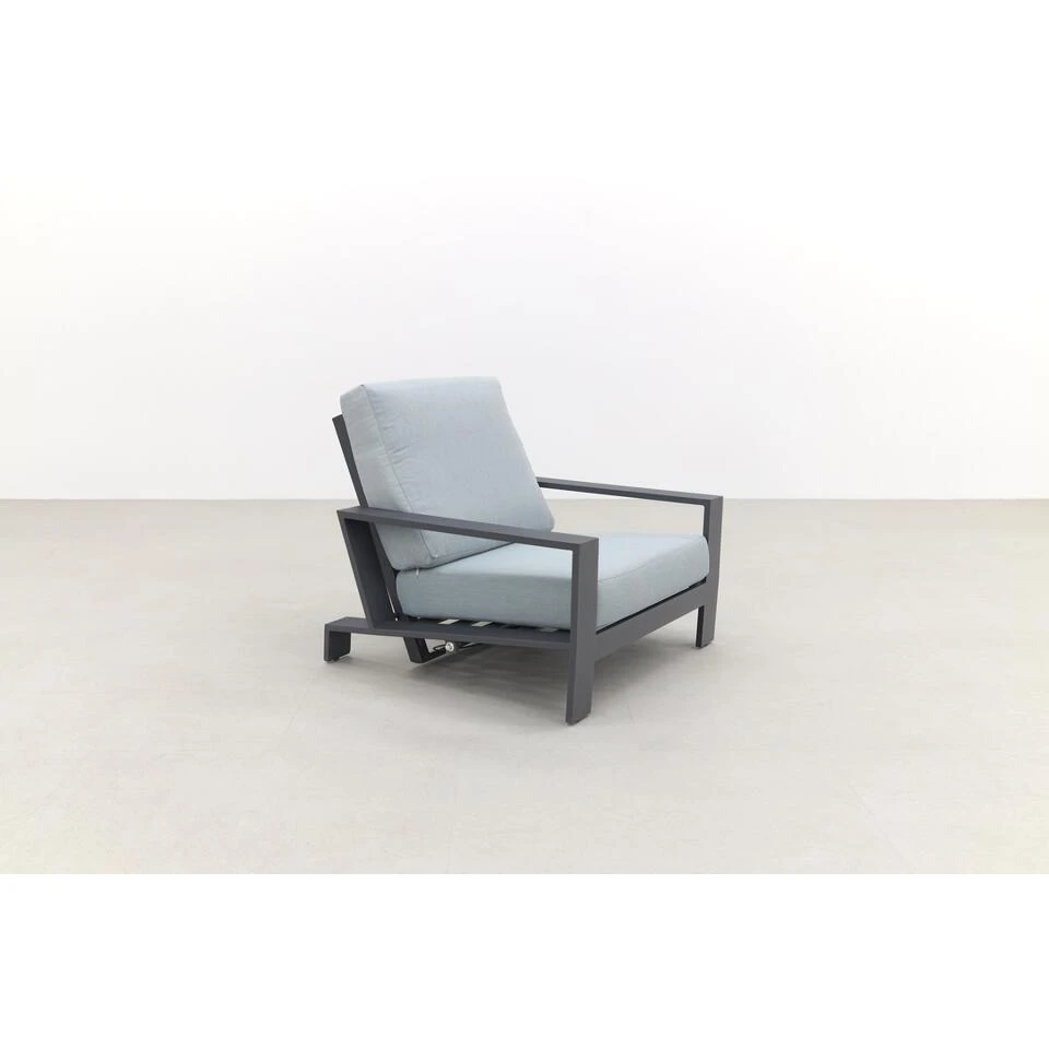De Lincoln Loungeset met verstelbare loungestoel heeft een aluminium frame met een donkergrijze poedercoating. Deze coating zorgt ervoor dat het frame kras- en stootvast is. Aluminium heeft als voordeel dat het licht van gewicht is. Hierdoor is de verstelbare loungestoel eenvoudig te verplaatsen. De meegeleverde loungekussens voelen comfortabel aan en zijn gemaakt van hoogwaardig polyester. De hoezen van de kussens zijn afritsbaar en uitgevoerd in de kleur mint grey. Mochten de hoezen vies zijn geworden dan kun je deze met de hand uitwassen. De loungekussens zijn niet waterbestendig, daarom adviseren wij om ze na gebruik op een droge en geventileerde plek op te bergen. Wel zijn de kussens voorzien van een waterafstotende coating. Mocht er geknoeid worden met drinken dan veeg je het vocht er gemakkelijk weer vanaf, super handig toch!?