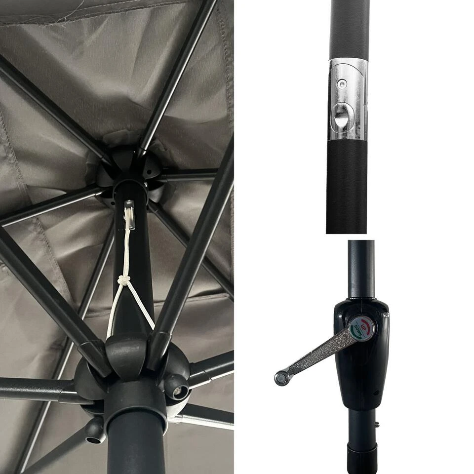 Met zijn rechte stok en rechthoekige luifel zal de HAPUNA parasol snel uw favoriete zomerparasol worden. Het elegante ontwerp van de parasol past perfect bij uw buitenmeubilair, ongeacht de stijl ervan. Het grote formaat, de kantelbare stok en het polyester doek houden u de hele dag uit de zon. Hij heeft ook een praktische slinger om hem gemakkelijk te openen.