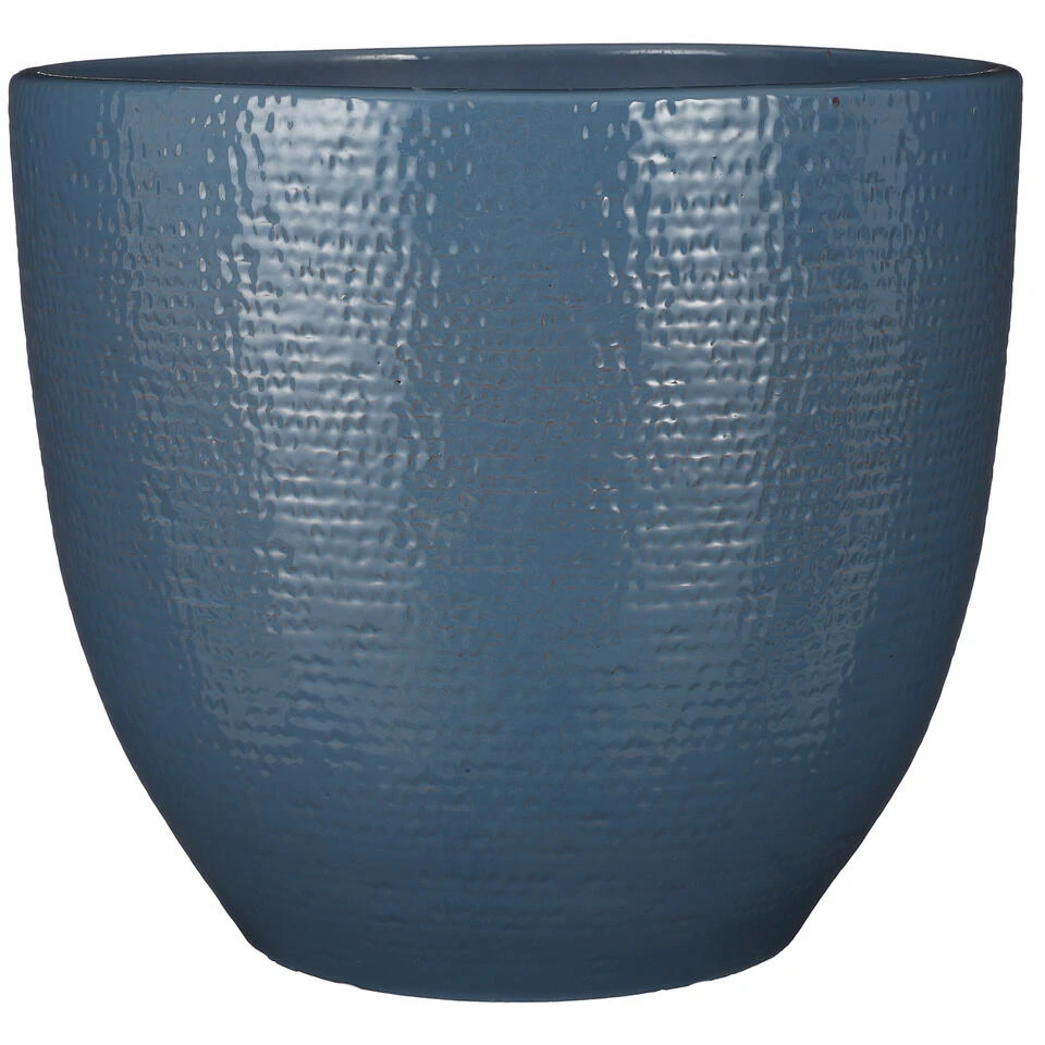 Plantenpot/bloempot van terracotta in de kleur blauw glans met een modern relief flakes patroon. Diameter 35 cm en hoogte 32 cm. Stijlvolle bloempotten voor binnen gebruik. Serie: Carrie. De zeer mooie potten met prachtige buitenzijde zijn met de hand gemaakt in Portugal. Derhalve is geen pot exact hetzelfde en hebben de bloempotten een echt karakter. Materiaal: Terracotta. Tip: zet een schotel onder de pot om eventueel lekken tegen te gaan. Potten van steen zijn niet 100% waterdicht.