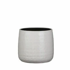 Plantenpot/bloempot van keramiek in de kleur warm wit met een mooi relief patroon. Diameter 17 cm en hoogte 15 cm. Stijlvolle bloempotten voor binnen gebruik met een glanzende finish. Serie: Floyd. Het prachtige gedrukte patroon aan de buitenzijde is met de hand gemaakt in Portugal. Derhalve is geen pot exact hetzelfde en hebben de bloempotten een echt karakter.