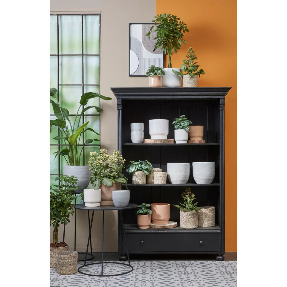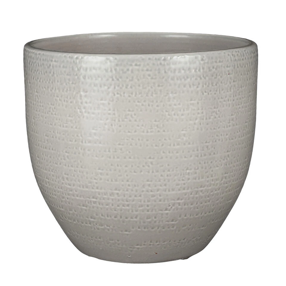 Plantenpot/bloempot van terracotta in de kleur lichtgrijs met een modern relief flakes patroon. Diameter 29 cm en hoogte 26 cm. Stijlvolle bloempotten voor binnen gebruik. Serie: Carrie. De zeer mooie potten met prachtige buitenzijde zijn met de hand gemaakt in Portugal. Derhalve is geen pot exact hetzelfde en hebben de bloempotten een echt karakter. Materiaal: Terracotta. Tip: zet een schotel onder de pot om eventueel lekken tegen te gaan. Potten van steen zijn niet 100% waterdicht.